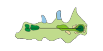手前のサンドバンカーとグリーン右と奥のグラスバンカーが良く効いていて小技を競うホールで正確なアイアンショットが必要。
