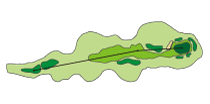 200ヤード地点、フェアウェイセンターにグラスバンカーがあり、ティーショットの正確さが必要、やや打ち上げのフラットなコースで縦長のグリーン。