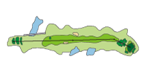 右には池があり、セカンドショットでグリーンをとらえ難い。グリーンは砲台型。