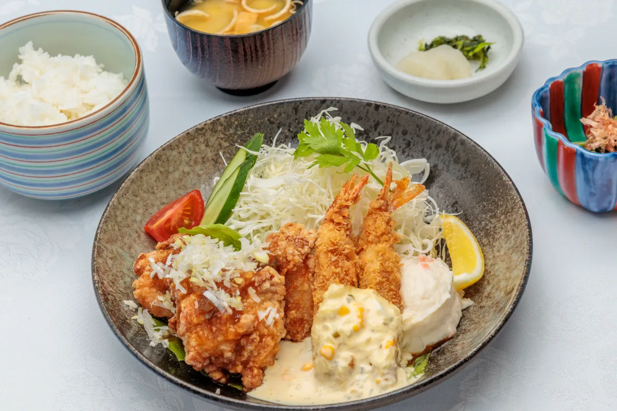 • 油淋鶏と海老フライ膳